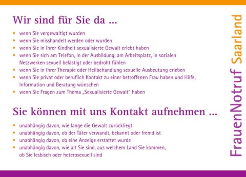 • wenn Sie vergewaltigt wurden • telefonische und persönliche beratung –