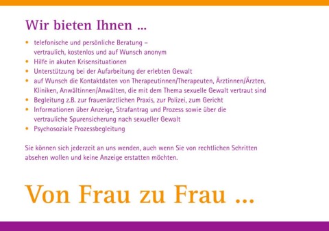 • wenn Sie vergewaltigt wurden • telefonische und persönliche beratung –