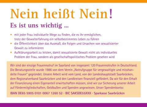 absehen wollen und keine Anzeige erstatten möchten. delte Frauen“ gegründet. unsere Arbeit wird vom land, von der landeshauptstadt Saarbrücken,