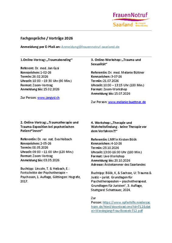 Anmeldung per E-Mail an: Anmeldung@frauennotruf-saarland.de